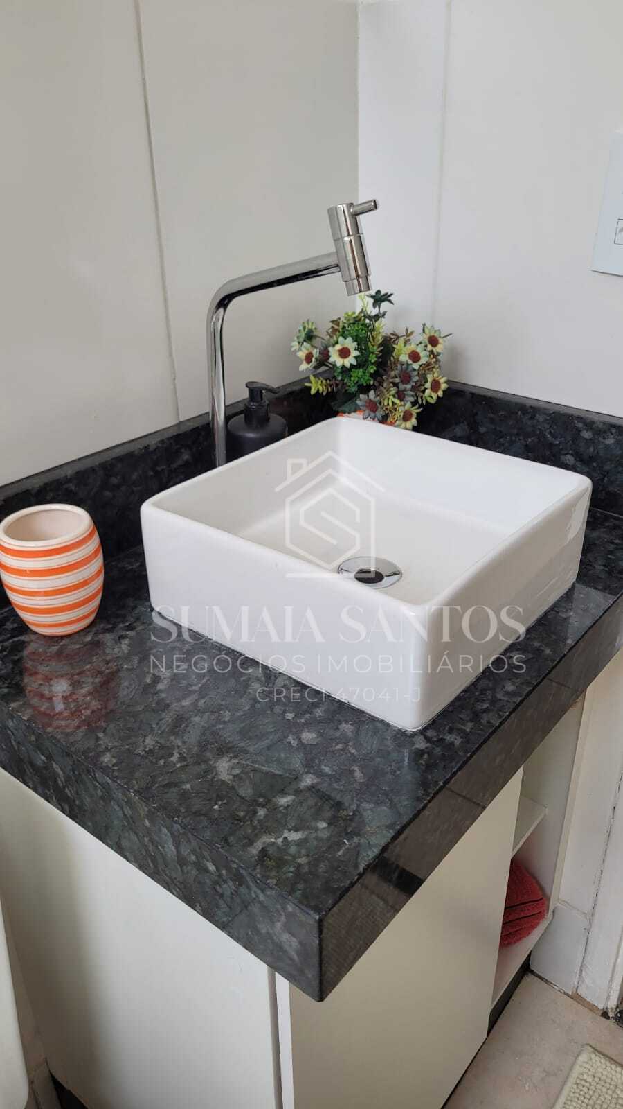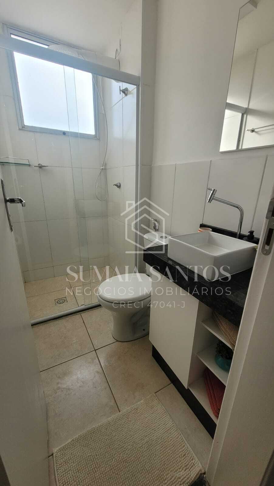 1 banheiro com móvel e box
