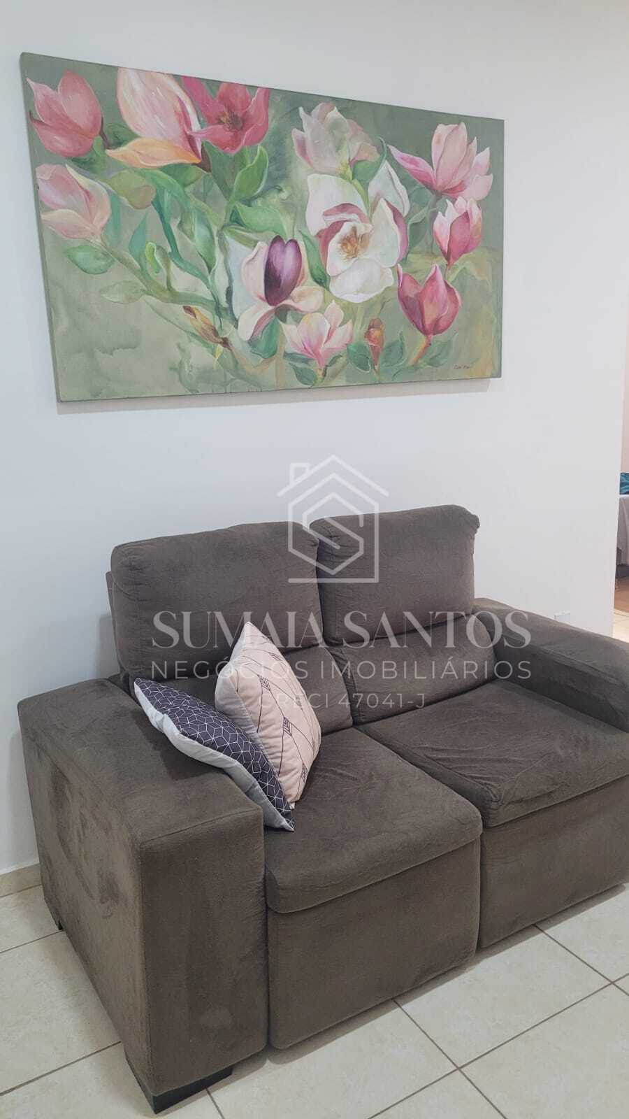1 sala com Tv, painel e sofá