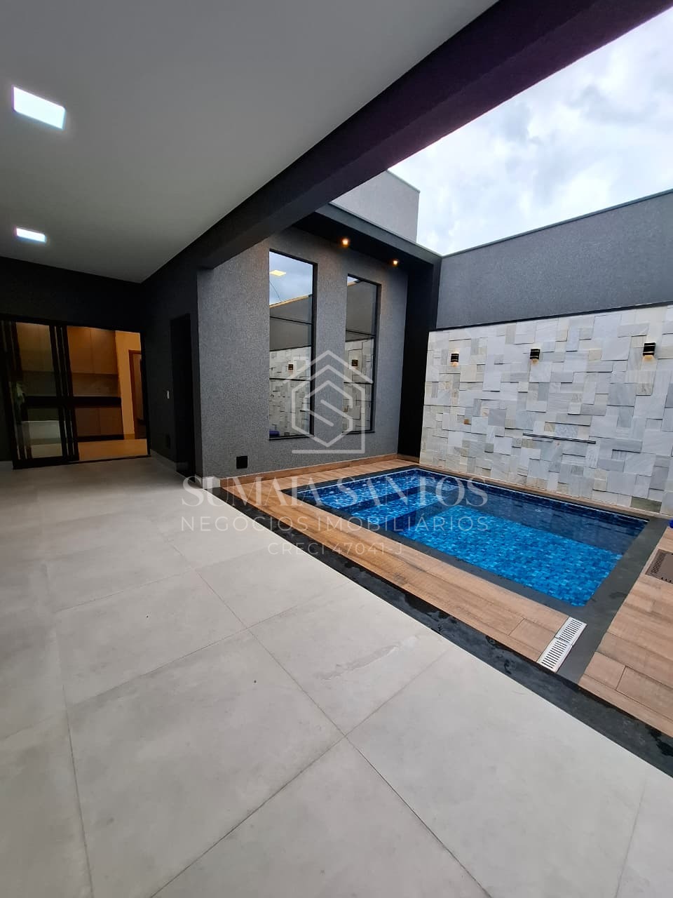 Próximo a mercados, academia e pista de caminhada -200m2 terreno, sendo 159,80m2 de área construída -3 Dormitórios, 2 suítes sendo uma máster com closet e área de claridade -Lavanderia coberta e corredor -Banheiro social -Sala com pé direito alto e janelas com pele de Vidro -Cozinha toda planejada -Projeto moderno e muito funcional -Armários Planejados -2 vagas de Garagem podendo ser ate 3 dependendo o veiculo -Área Gourmet com banheiro pra atender piscina -Acabamento em porcelanato Portobello e mármore são Gabriel escovado -Aquecimento com boiler de 500L já em funcionamento -Pontos para ar condicionado -Iluminação completa -Torneiras monologando -Esquadrias em Alumínio -Piscina aquecida com led, cascata e hidromassagem -Pedras são Tomé e tijolinho travertino Cairo integrados no projeto -Motor do portão com acionamento rápido de 4s
